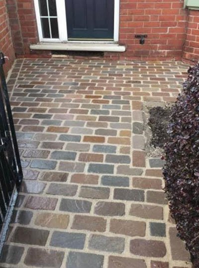 We removed a tired and dirty old block paved patio first, all waste removed from site.